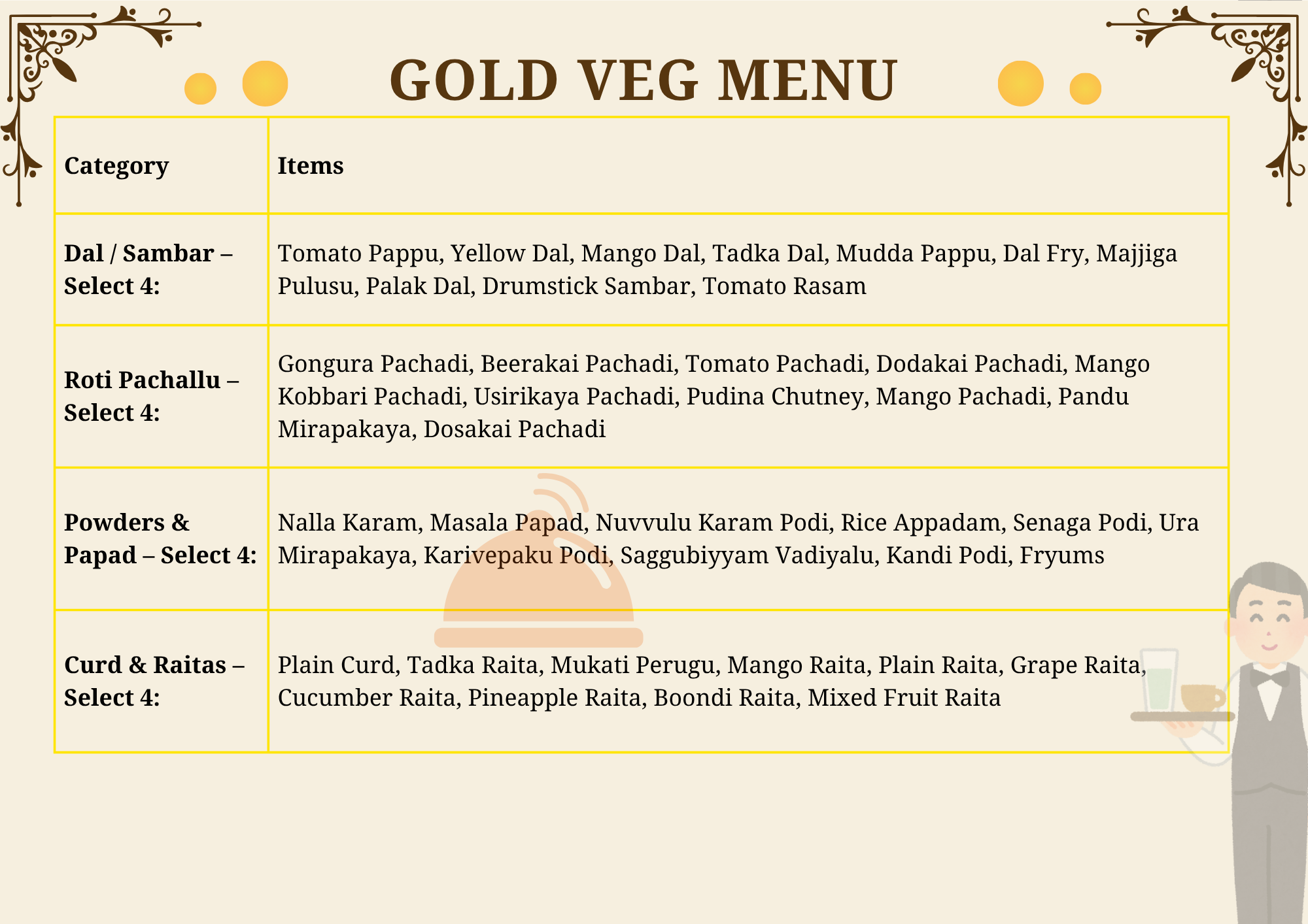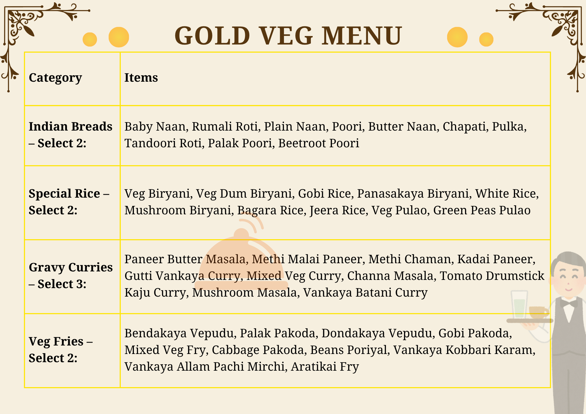 • Gold Veg Menu